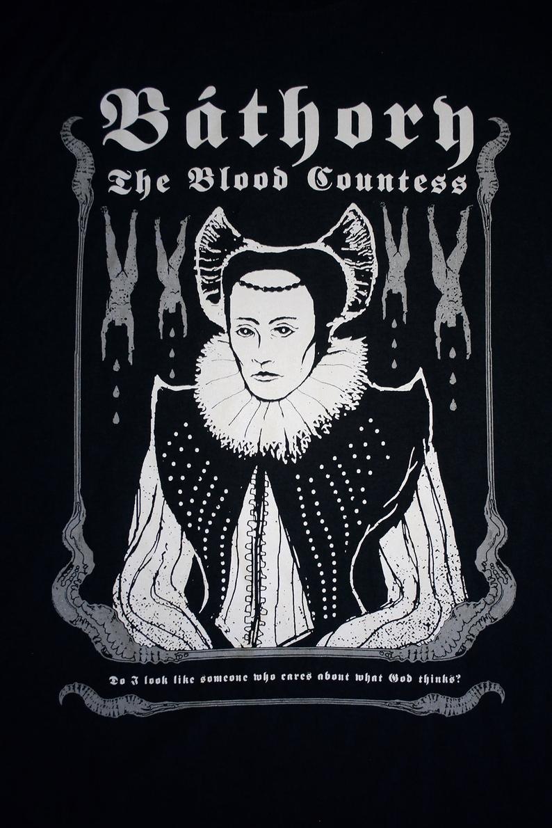The legendary Bathory envisioned in an illustration made by Torvenius. The blood countess with hanging corpses.