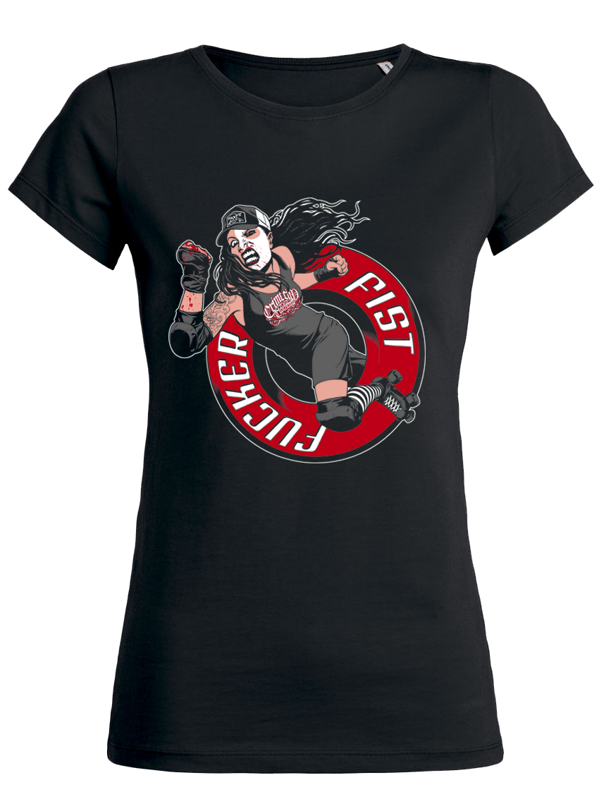 She wasn’t allowed to sell her merchandise with the others as her Roller derby name was too hardcore for the Canadians. The rumor of her name and designs spread like wildfire so she sold all her merchandise from the locker room instead!