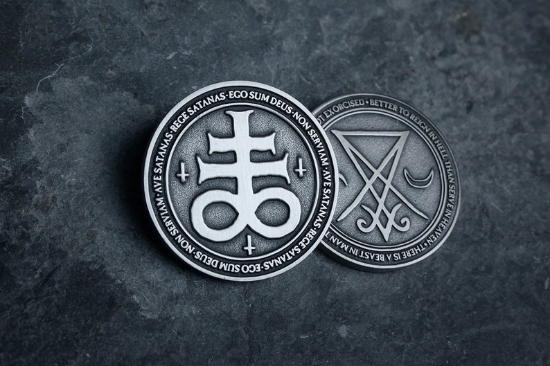 A collectible divination flip COIN, design by me. One side with Lucifer seal, Sigil of Lucifer and other side with Leviathan cross.