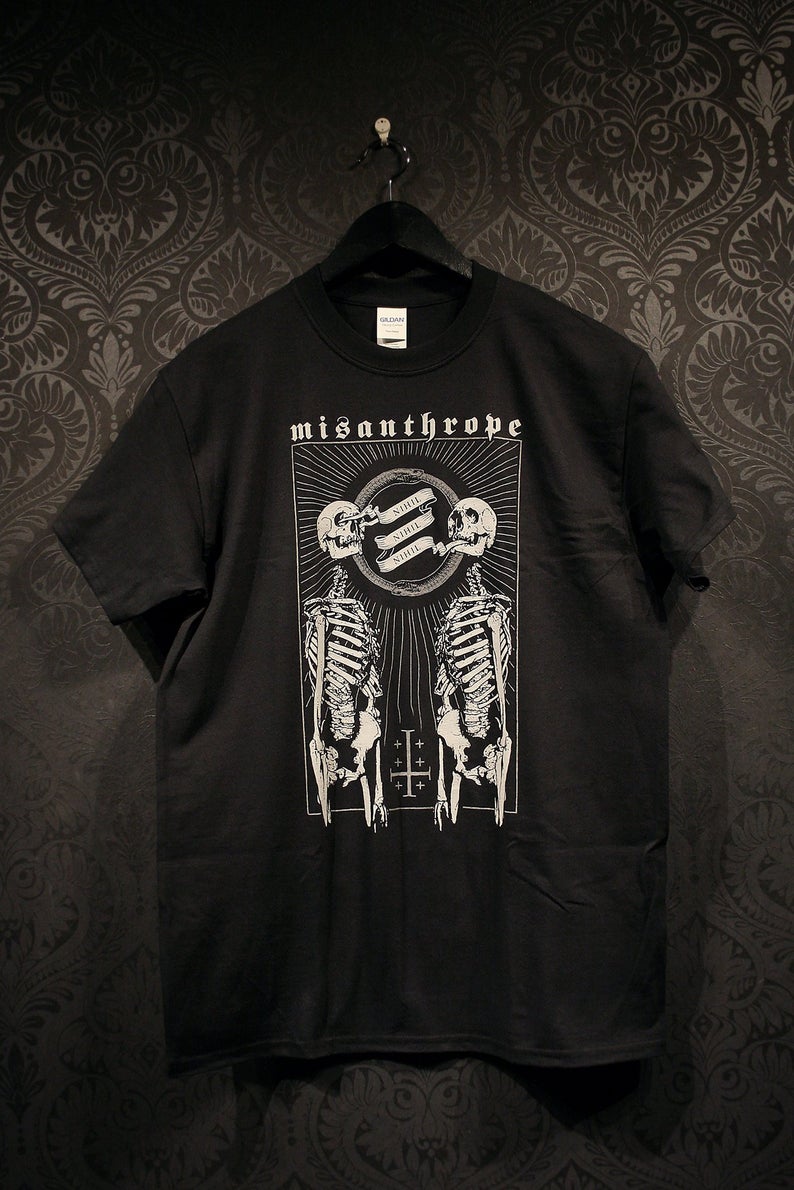 Misanthrope - nihil, nihil, nihil, as a t-shirtdesign. Original illustrations and design by Torvenius. Printed in duo tone grey.