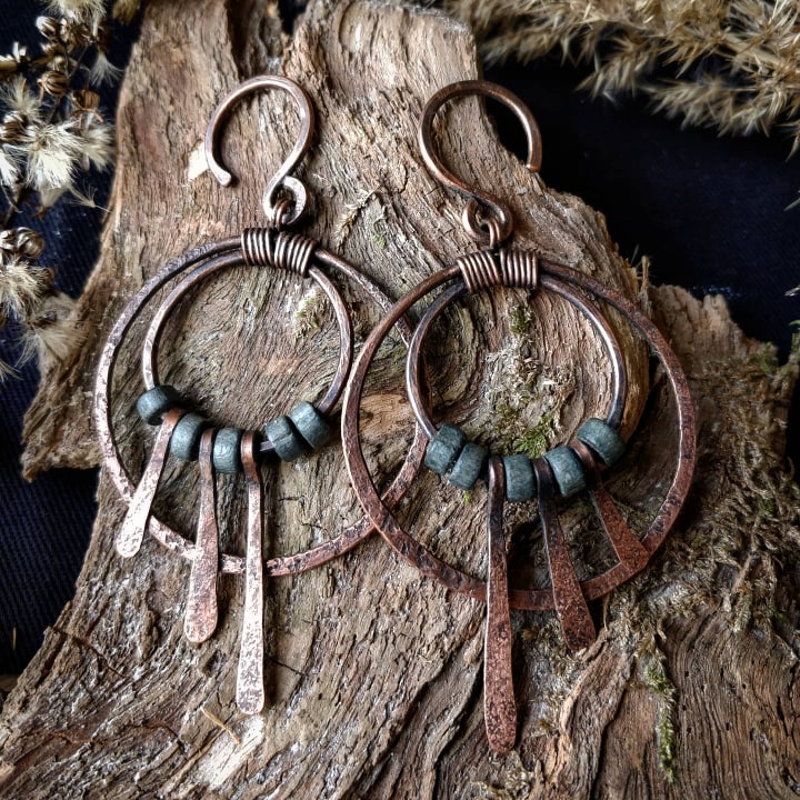 Handgjorda stora örhängen i koppar från Mylingsmycken.