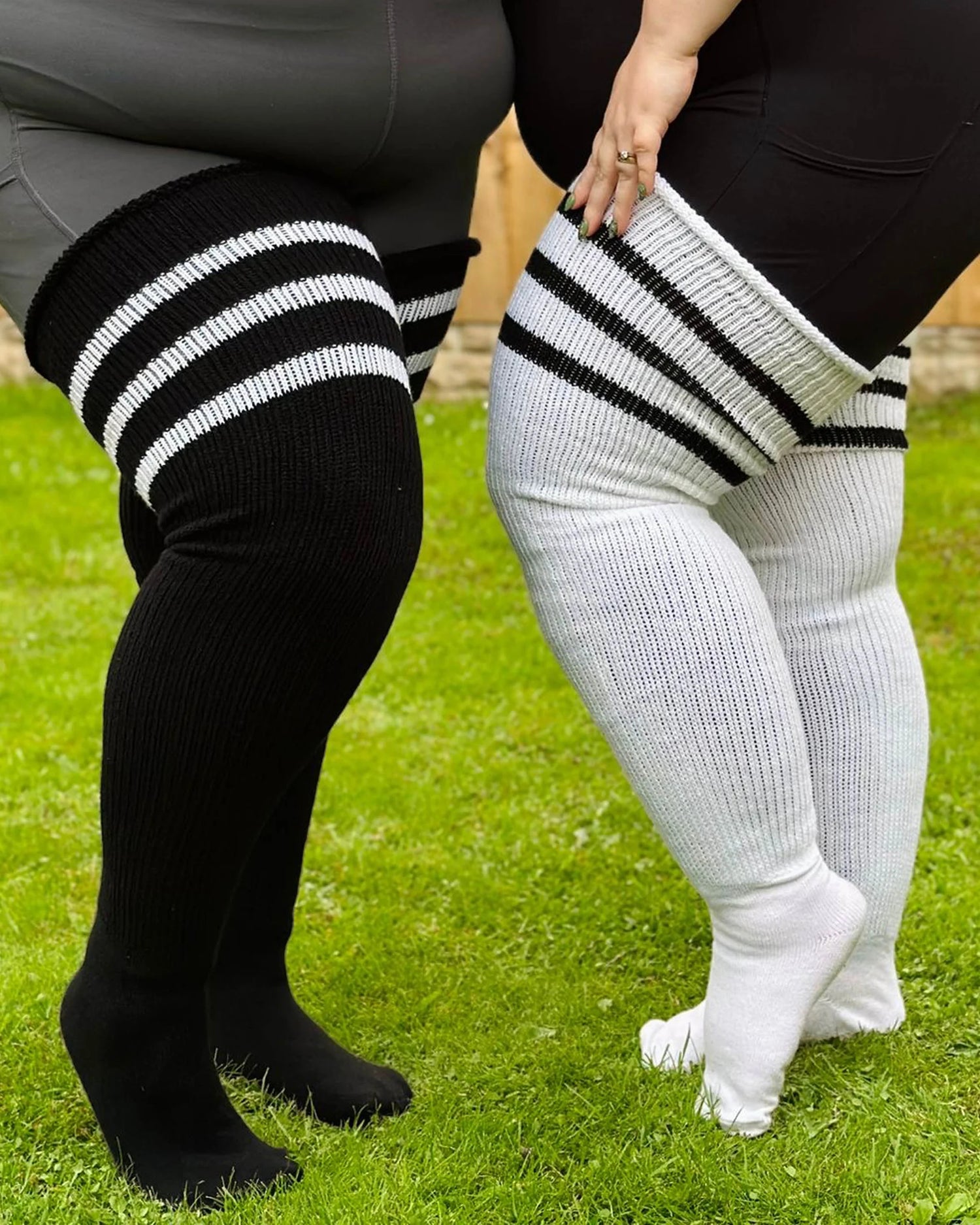 Knitted for full comfort and warmth, these socks will hug your thighs. Great for the colder days, great stretch and super soft.